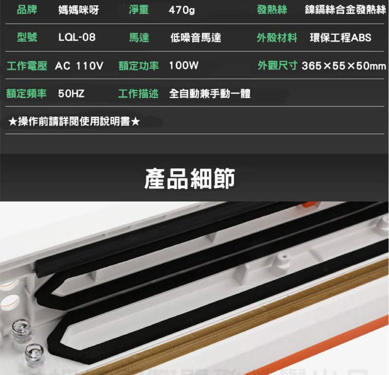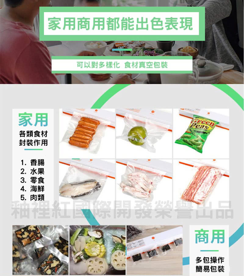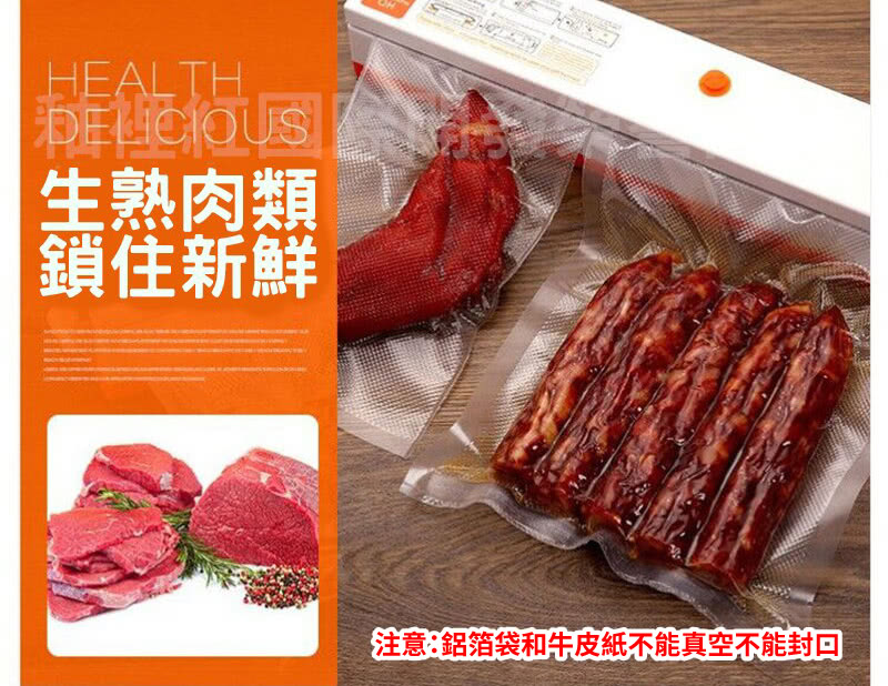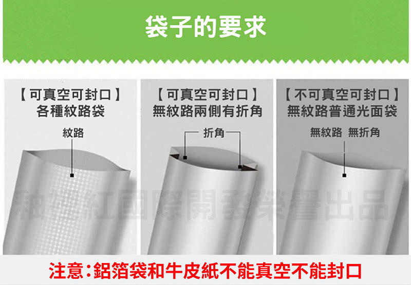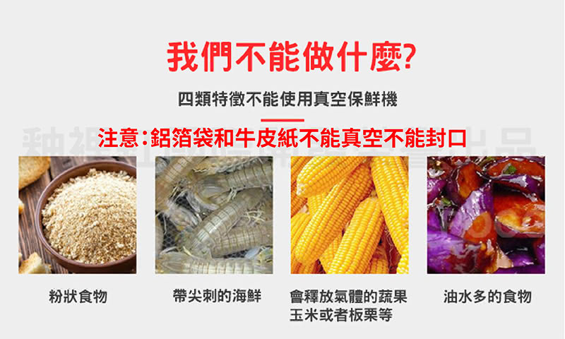 4.請勿直接包裝「粉末類」及「液體類」以免吸入機器造成商品損壞或危險。